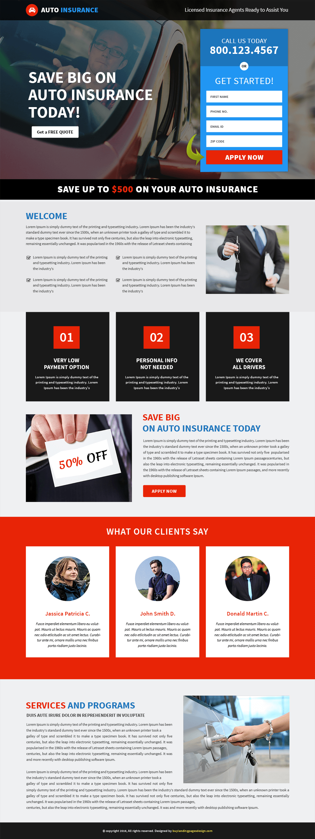 Download stunning auto insurance services landing page template and boost traffic and sales, increase revenue with our professional and clean landing page