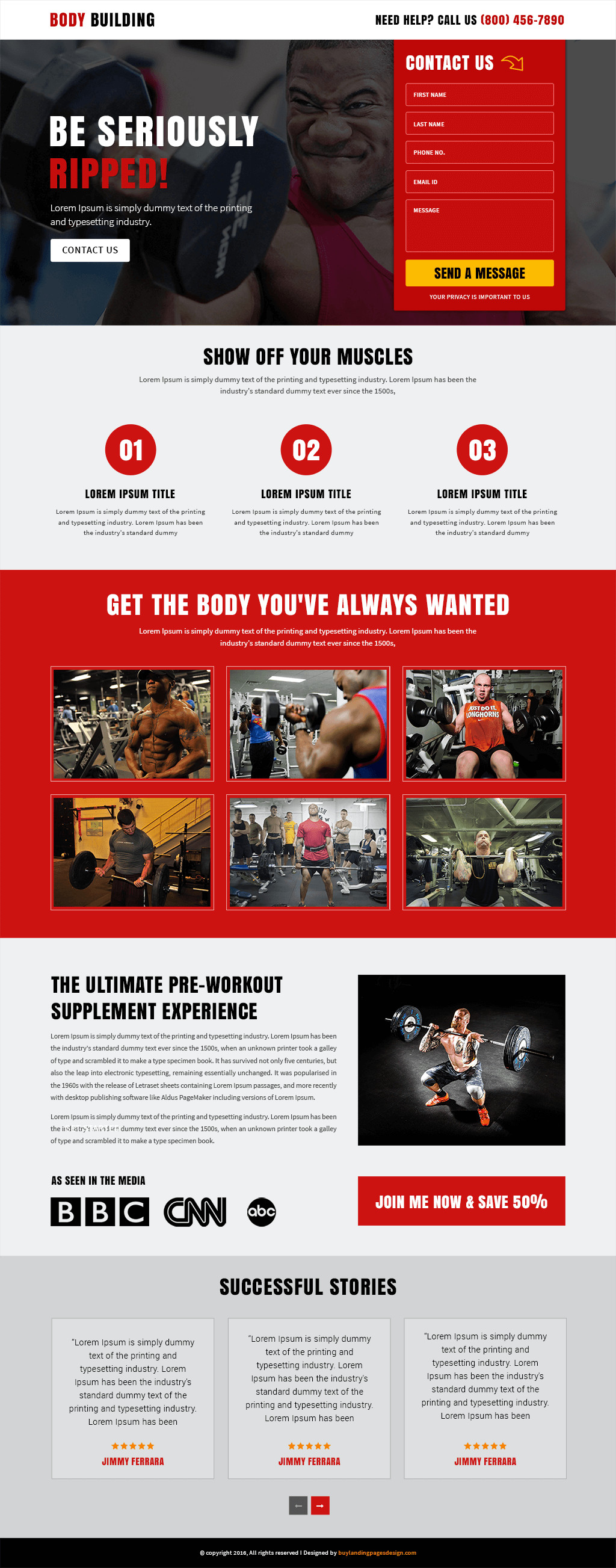 Download responsive body building fitness landing page design template for fitness or gym business, buy clean and professional fitness body building design.