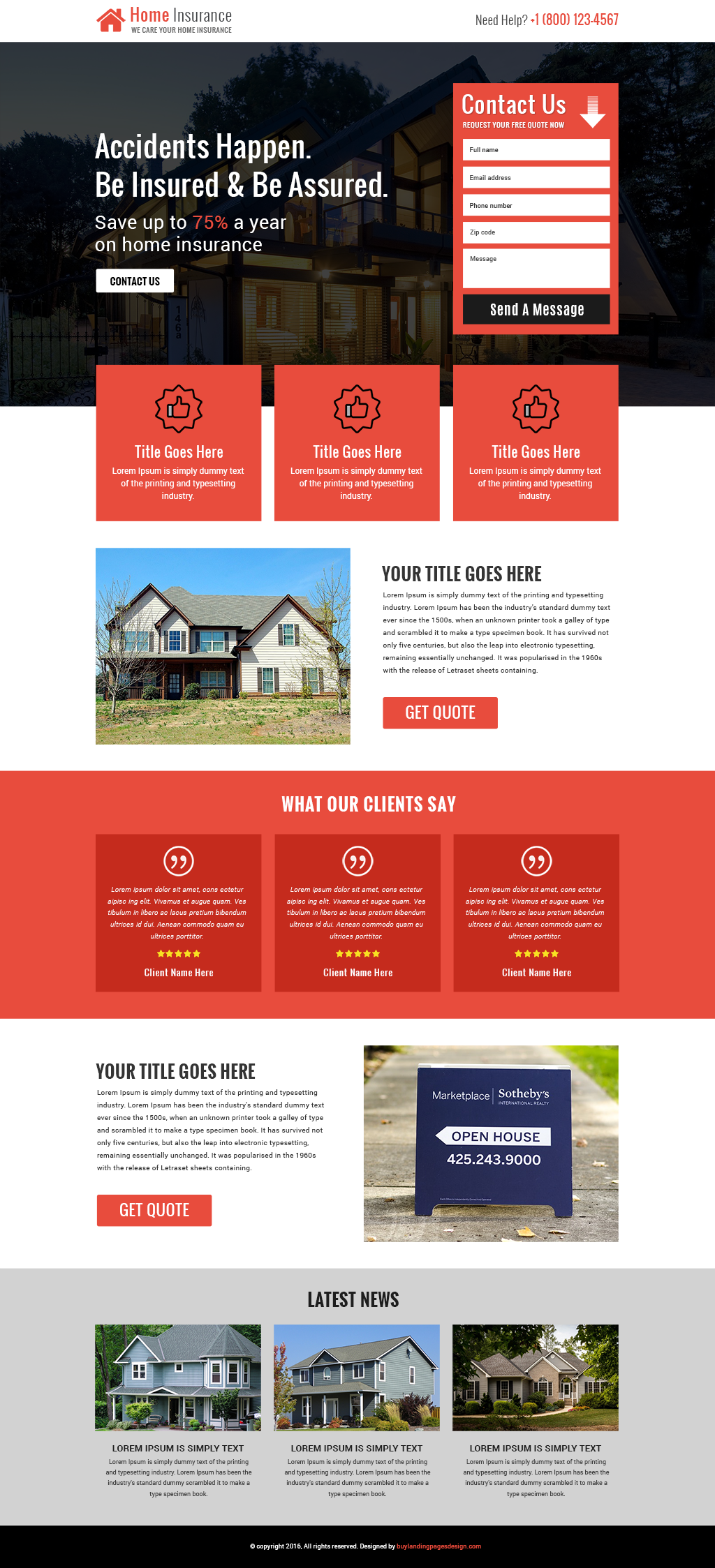 Attractive responsive home insurance service landing page template design for you insurance service business to get more user online increase your sale.