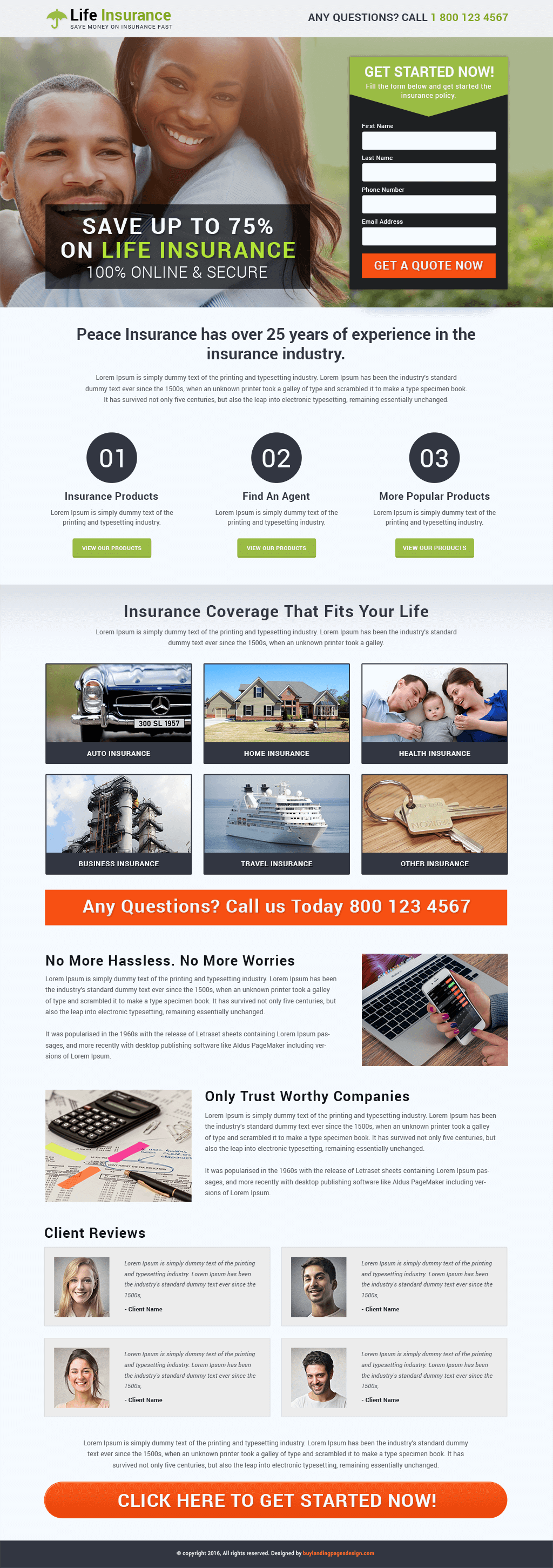 Purchase and download best responsive life insurance landing page design templates for your life insurance service business to attract more customers.