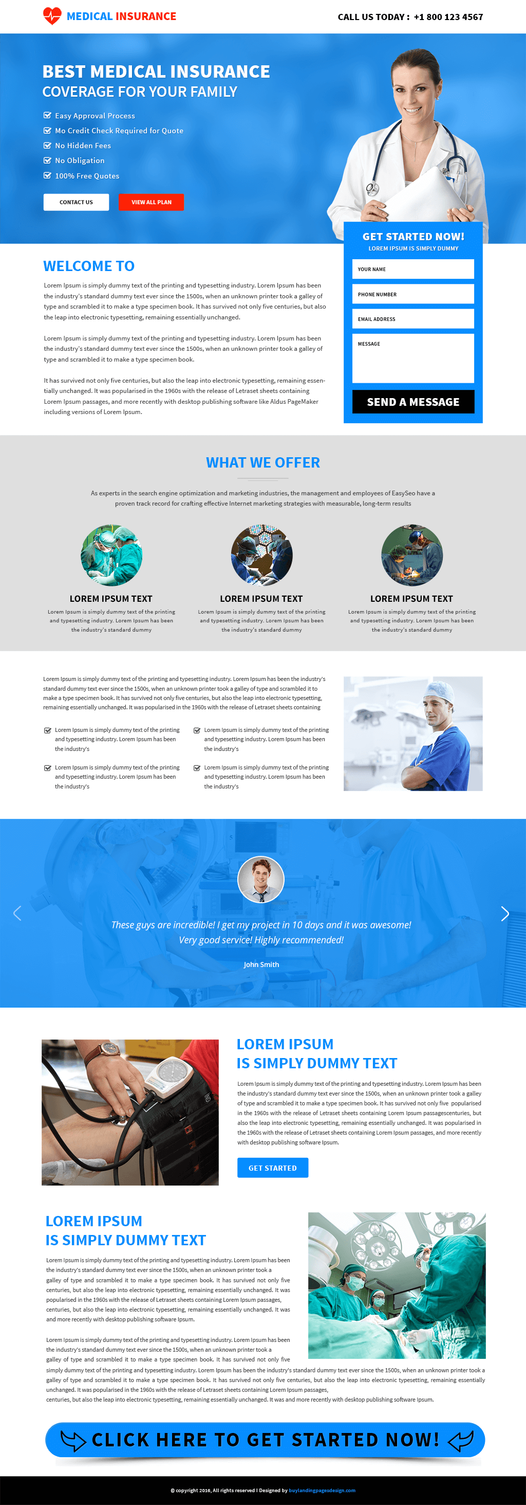 Download professional Medical Insurance Service landing page design on affordable price from our effective and clean health insurance landing page template