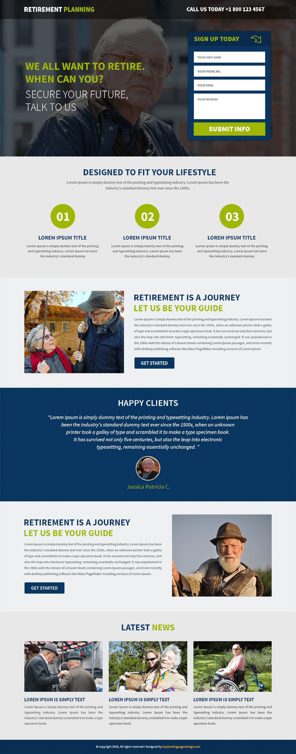 Best converting mobile friendly retirement planning landing page designs template to capture quality and positive leads online and boost your sale.