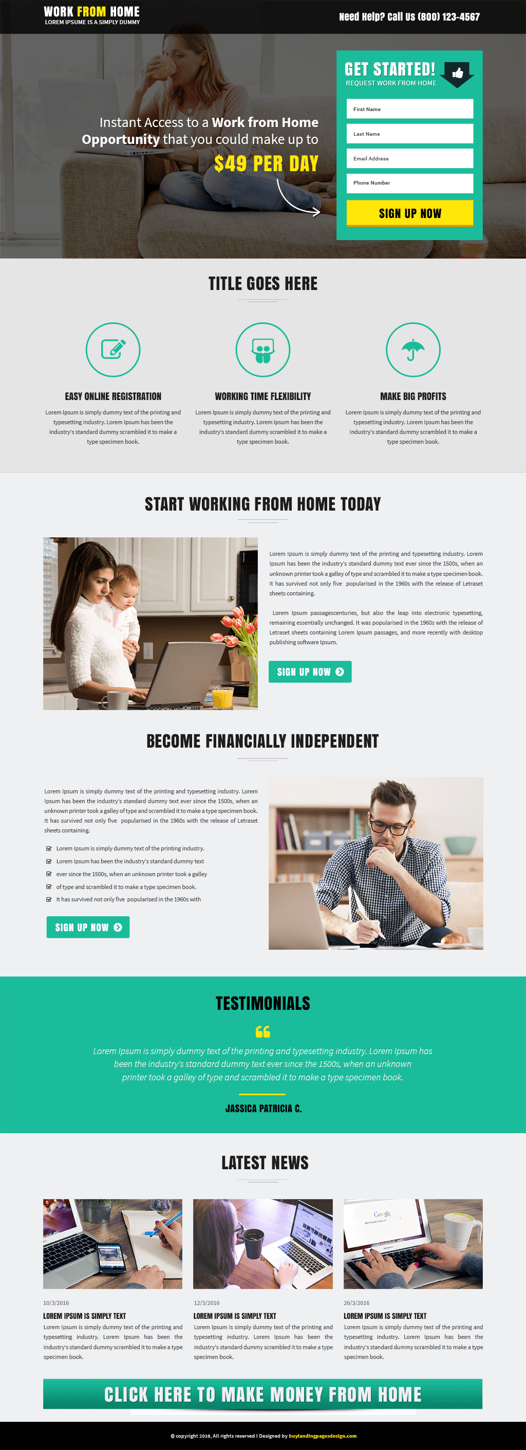 Get professional work from home landing page design template from the buylandingpagesdesign.com and get more traffic for your business and generate more revenue.